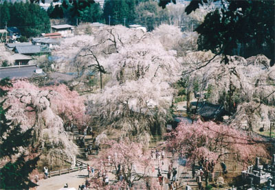 埼玉県荒川村 清雲寺 シダレザクラ(県指定天然記念物)高さ15.0m・葉張り2.72m 樹齢約600年 他約30本のシダレザクラ