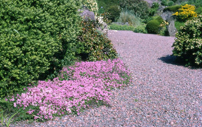 (1)砂利の園路やスクリー(砂礫地)などに適する<Thymus serpyllum var.pulchellus>(イブキジャコウソウ属)シソ科